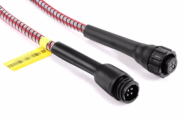 2、感应线在对接过程中,请注意公母接头针脚顺序,对准孔位轻轻插入再顺时针锁紧螺环即可(逆时针方向解锁)。